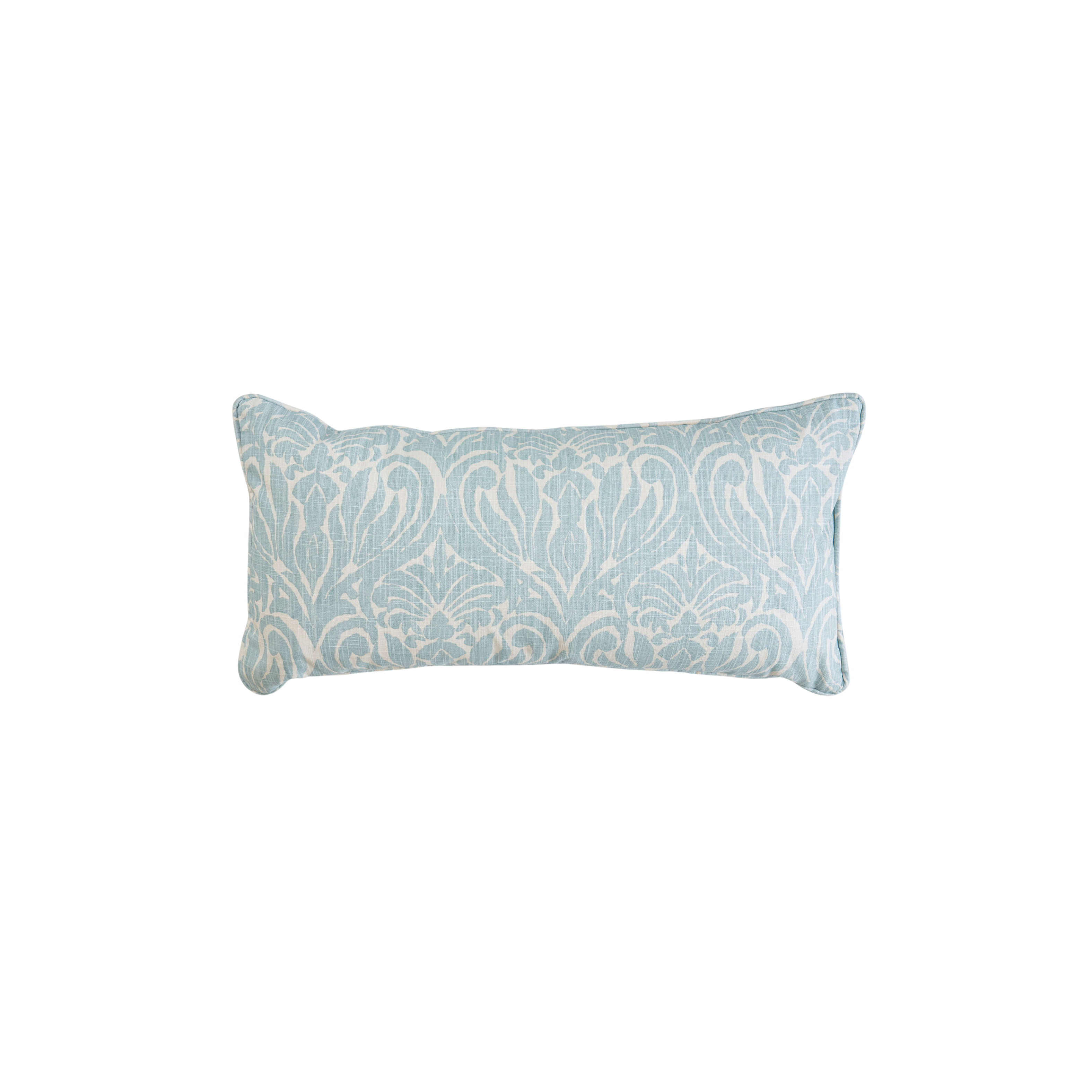 The light blue and white design on our Lockwood Mineral pillows adds a casual touch of elegance to any bedroom. Available in euro shams, throw pillows and lumbars - the Lockwood Mineral pattern can be incorporated throughout your home! Available in two sizes.