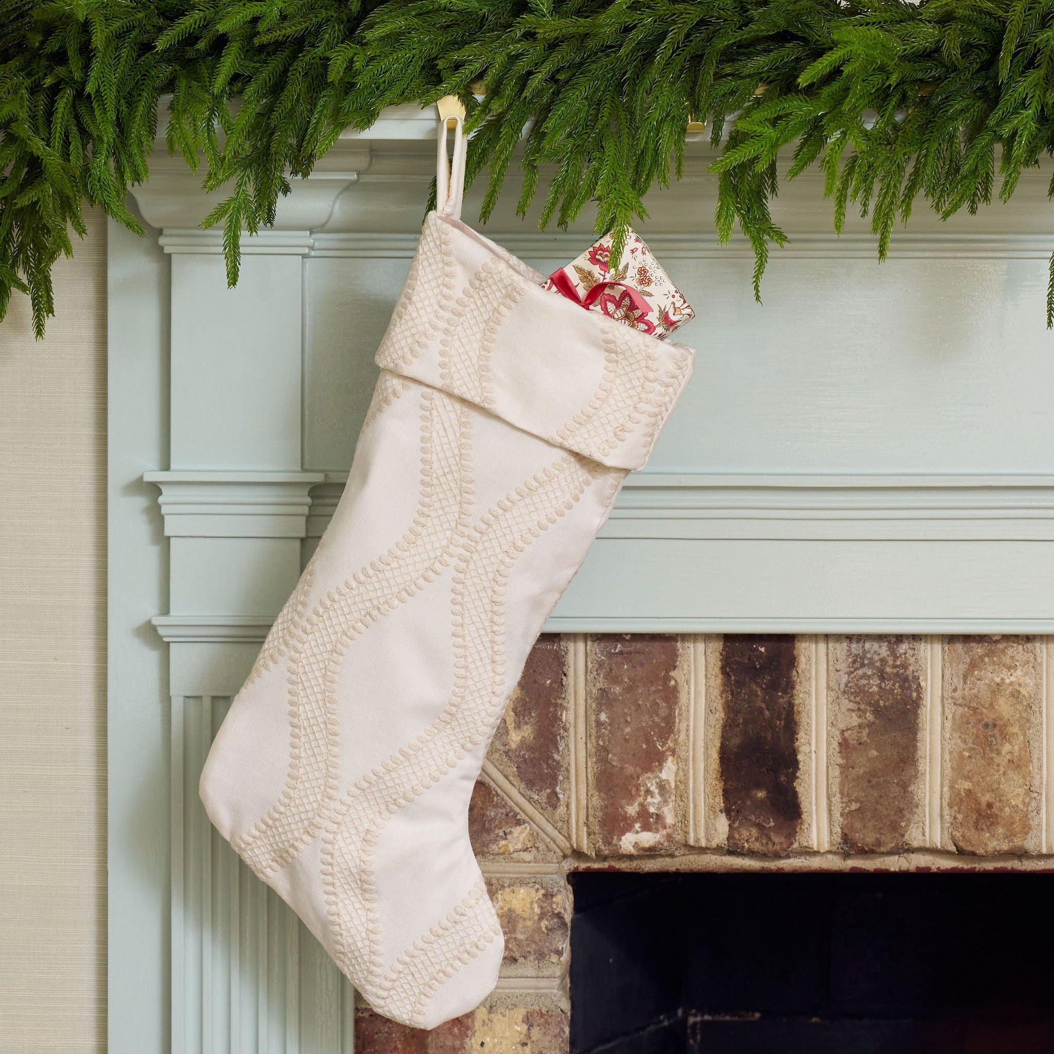 Our Cooper Ivory stocking brings seasonal charm to your mantel or stair rail through its embroidery and neutral design.