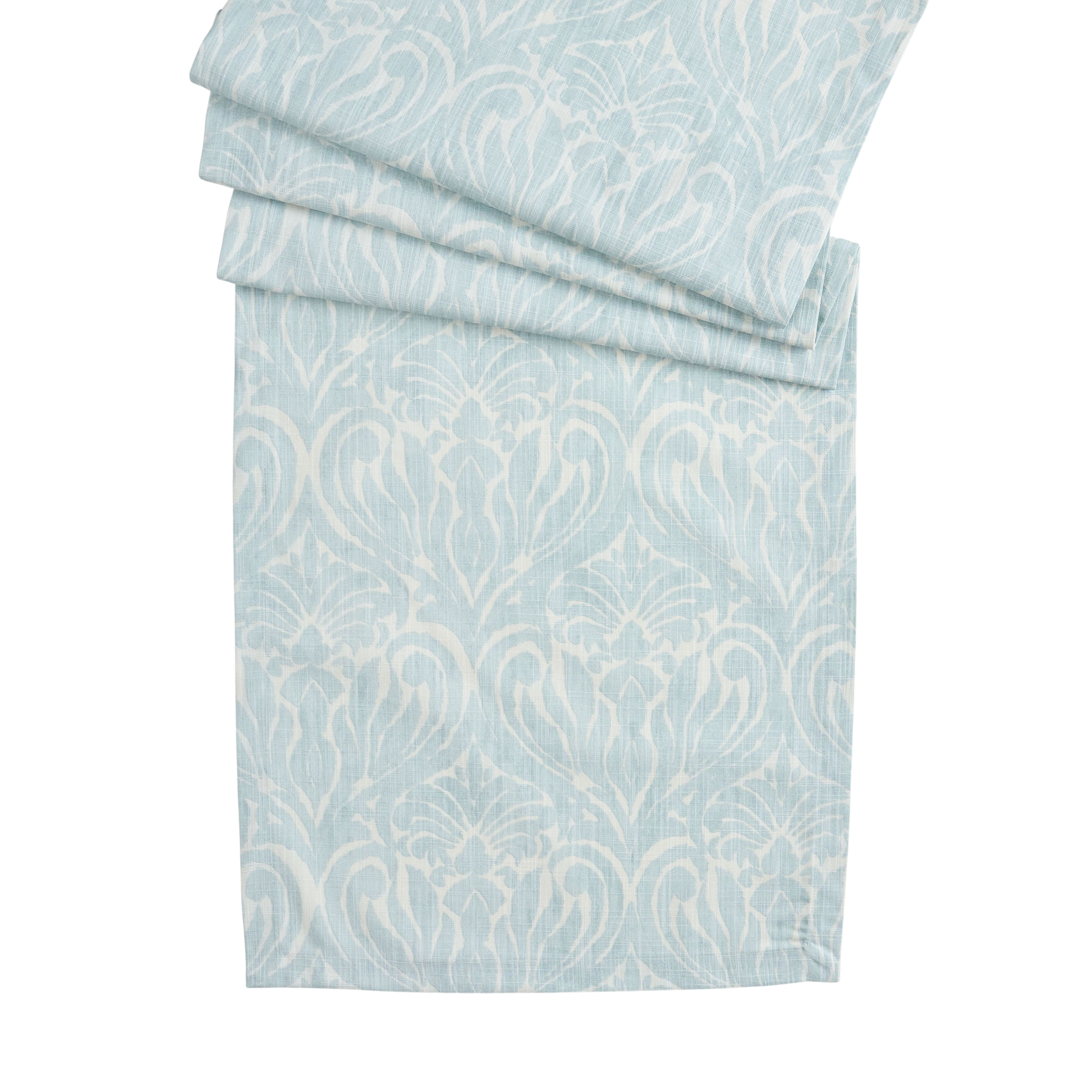 The light blue and white pattern of our Lockwood Mineral table runner adds a subtle touch of elegance to any table setting. Pair with our coordinating Lockwood Mineral placemats, dinner napkins, and cocktail napkins for a cohesive look.