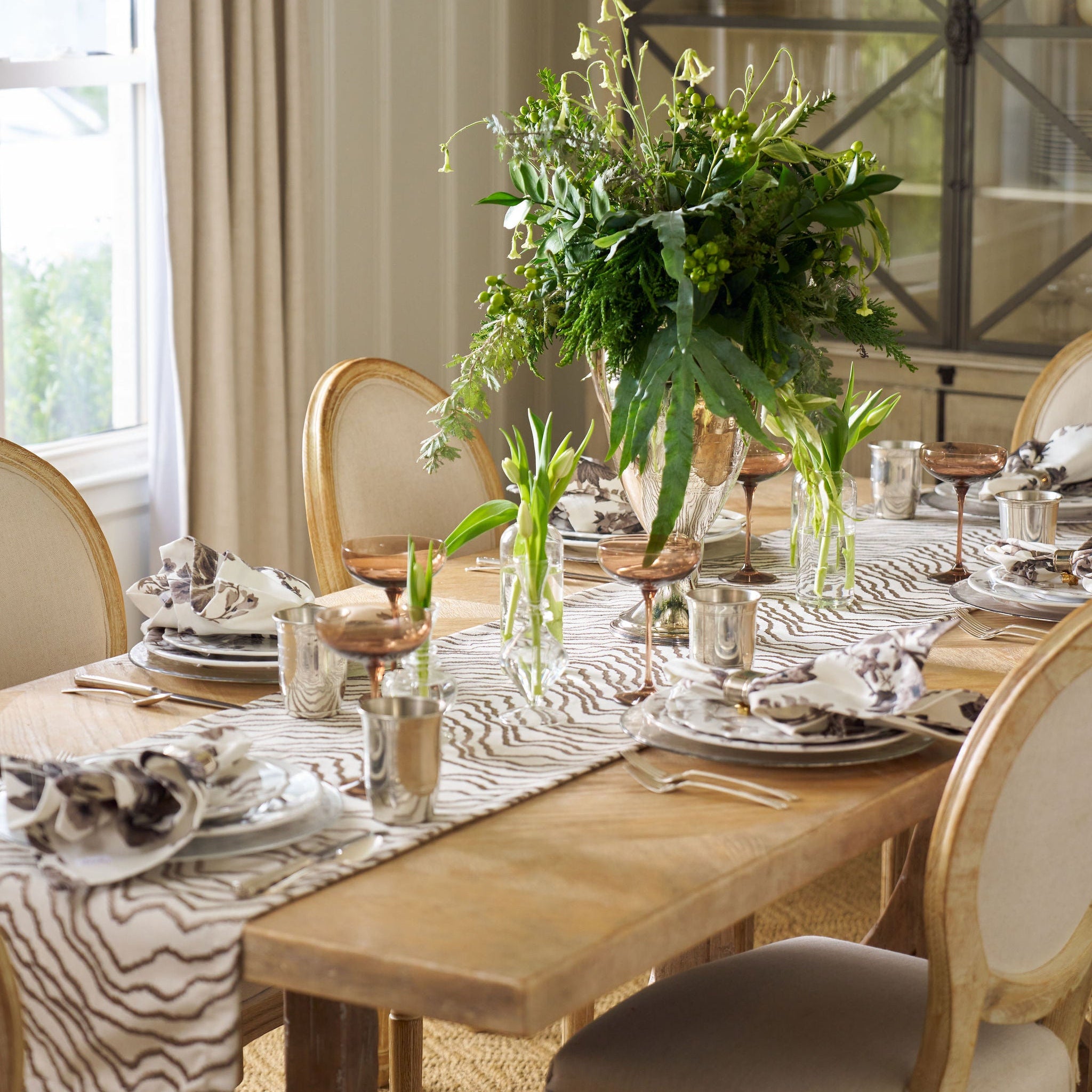 Our beautifully embroidered Rivers Pewter table runner is sure to add an elevated pop to any table.