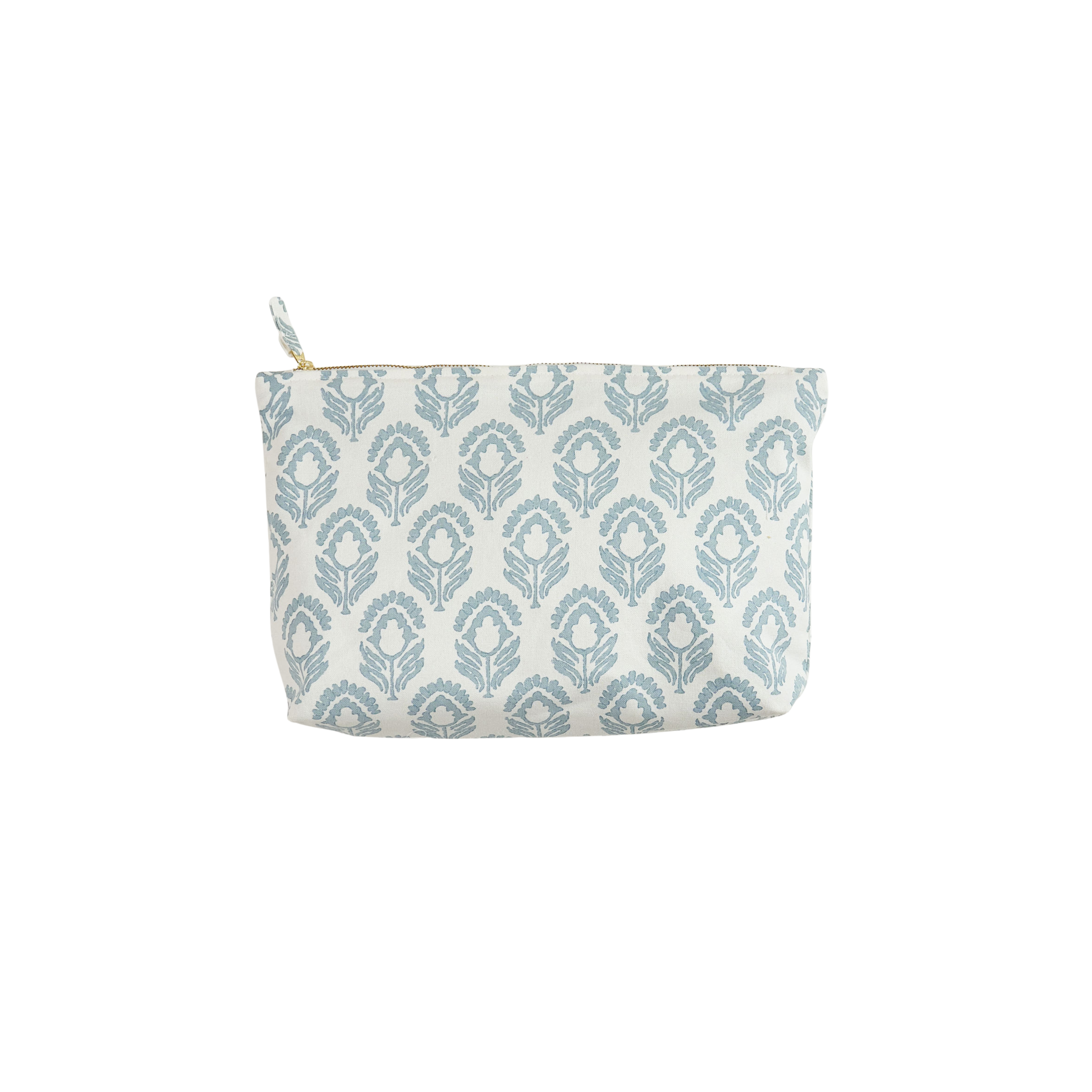 Perfect for travel or everyday use, our Broad Powder cosmetic bag adds a pop of color to your day through its pastel block-printed floral motif.